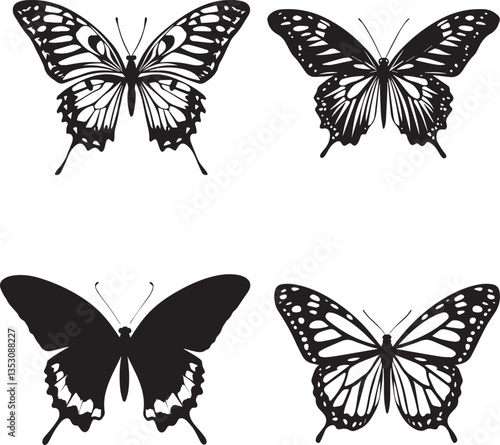 Obraz premium Butterfly with Wings Spread Silhouette Vector