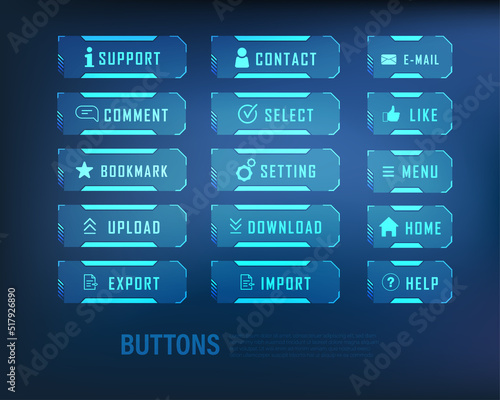 © Dissapong, Obraz premium button collection sci-fi style set color blue