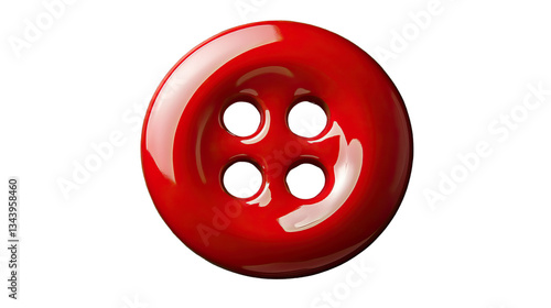 Fototapeta premium Buttoned Up: A vibrant close-up showcases a glossy, red button, its holes...
