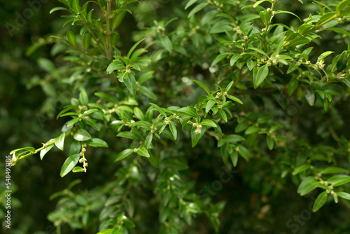 Obraz premium Buxus Colchica Leaves Close Up Background.