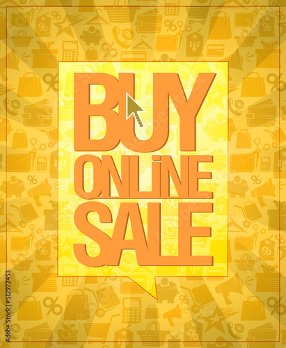 Fototapeta premium Buy online sale banner with shopping symbols