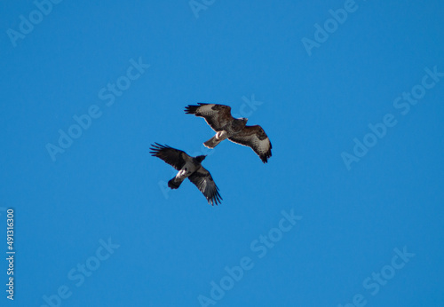 Obraz premium Buzzard with crow in flight
