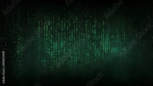 © Ashan, Fototapeta premium by a binary code matrix in green. dark background