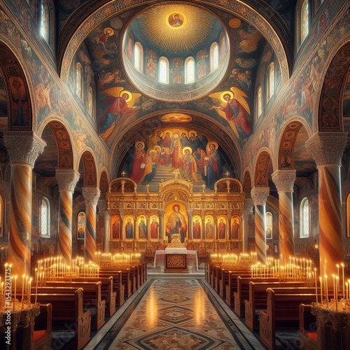 © Konstantin, Obraz premium Byzantine Chapel Frescoed ceilings marble iconostasis candlelit