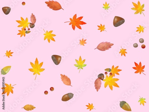 © Sachi, Obraz premium クリとモミジのシームレスパターン C-1