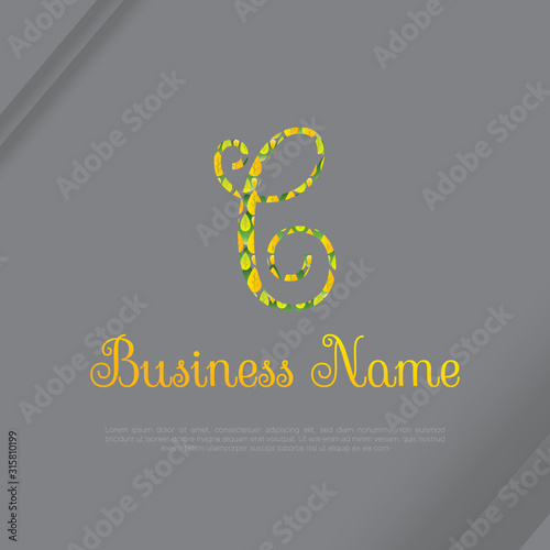 Fototapeta premium C Letter Script Font Logo Template with Foliage Style