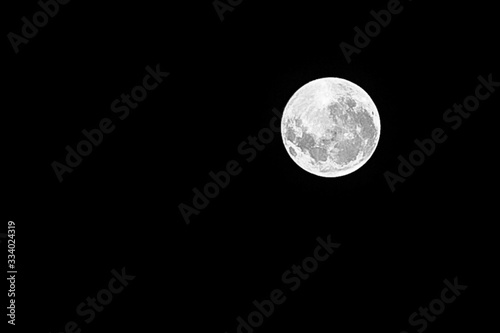 Obraz premium Céu negro e lua cheia, durante a noite do dia 11 de Janeiro de 2020, na...