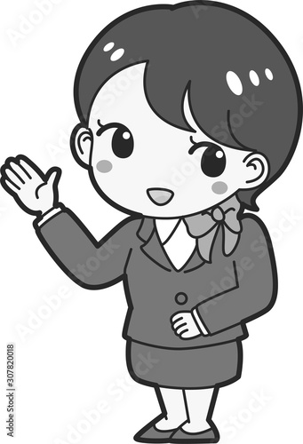 © Daphnia, Obraz premium 女性 案内 係 ホテル CA ガイド 客室乗務員 誘導 アテンド 説明 解説 旅行 爽やか 全身