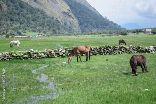 © Belen, Fototapeta premium Caballos pastizando
