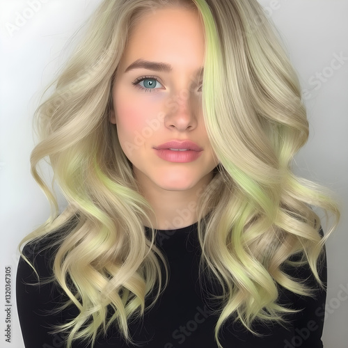 © patypixie, Fototapeta premium Cabello largo y radiante con un contraste fascinante de colores