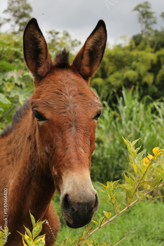 Fototapeta premium Cabeza de mula marrón en campo natural