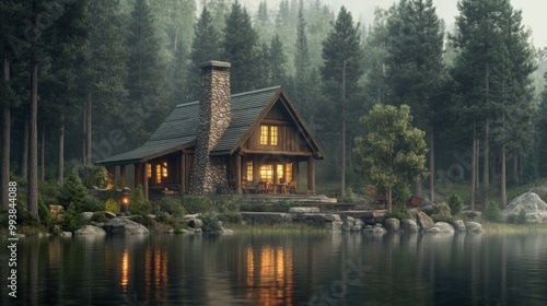 © Erna yuliyanti, Fototapeta premium Cabin by the Lake