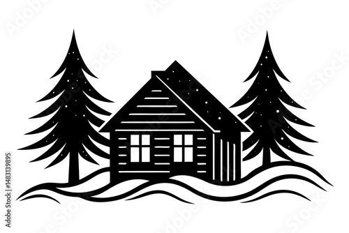 Fototapeta premium Cabin in winter landscape silhouette vector illustration