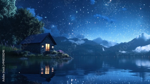 Fototapeta premium Cabin Under a Starry Night