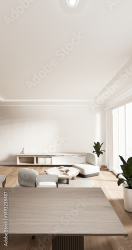 © Interior Design, Fototapeta premium Cabinet room wooden interior armchair sofa and decoration modern style.3D rendering