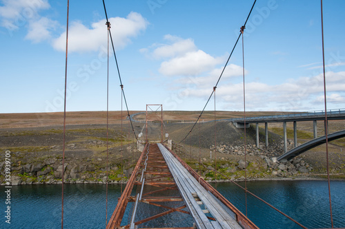 © Gestur, Obraz premium cable car bridge across river Tungnaa in Iceland