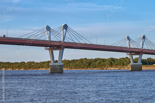 Naklejka premium Cable-stayed bridge across the Amur River. Russia and China. Silk Road