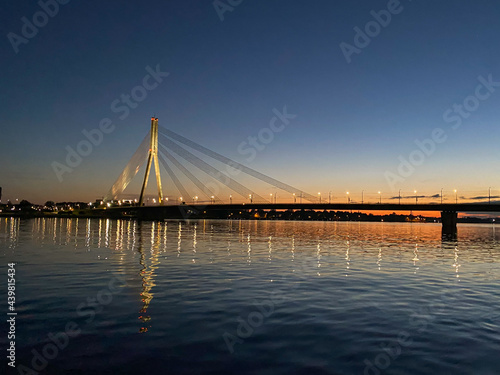 © Emils, Obraz premium Cable-stayed bridge across the river. The bridge with night lighting.