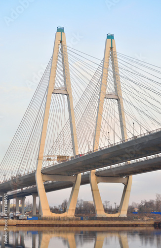 © konstan, Fototapeta premium Cable stayed bridge and Neva river.