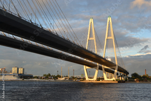 © konstan, Fototapeta premium Cable stayed bridge at evening.
