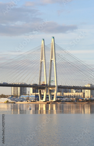 © konstan, Fototapeta premium Cable stayed bridge at evening.