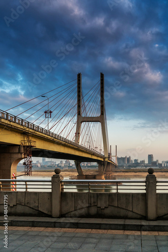 © gjp311, Obraz premium Cable stayed bridge at sunset
