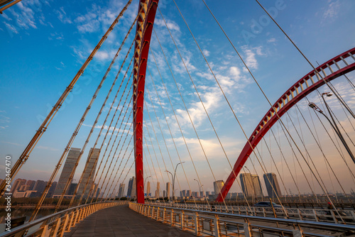 © gjp311, Obraz premium Cable stayed bridge at sunset