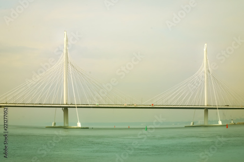 Fototapeta premium cable-stayed bridge on the river in the afternoon