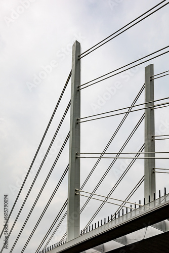 Obraz premium Cable-stayed bridge pillars reaching for cloudy sky