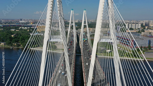 © Kokhanchikov, Obraz premium Cable-stayed bridge with cars