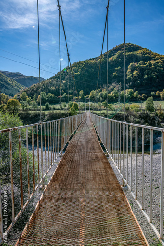 © popovj2, Obraz premium Cable-stayed old bridge over mountain river
