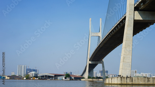 © kiet, Naklejka premium cable wire bridge with blue sky