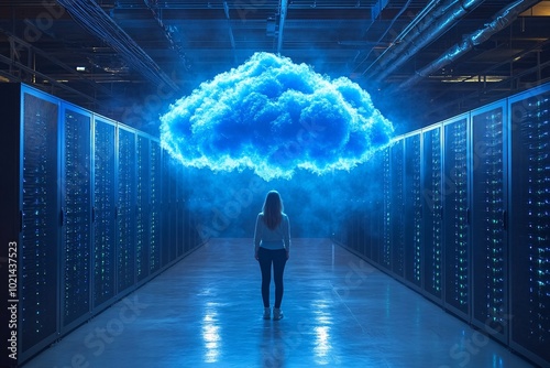 Obraz premium Cables and Servers Within a Data Center Environment