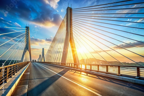 Fototapeta premium Cablestayed Bridge, Automotive Cable-Stayed Bridge, Car Bridge, Highway Bridge, Suspension Bridge, Modern Bridge Architecture, Civil Engineering, Infrastructure, Transportation, Road Bridge,