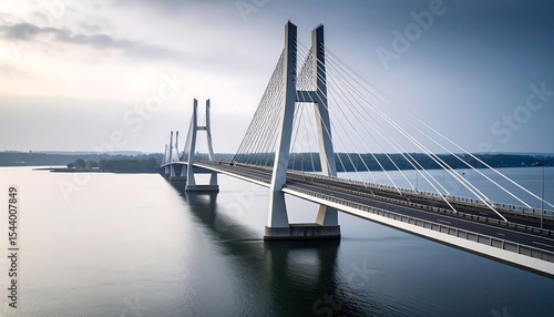 Obraz premium Cablestayed bridge over calm water.
