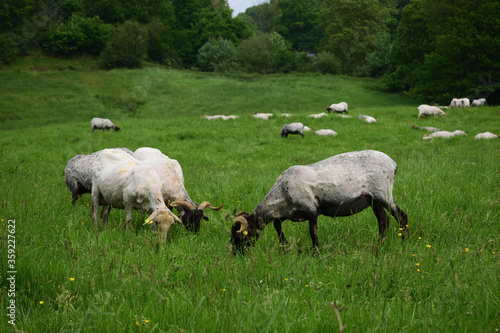 © Javier, Obraz premium Cabras pastando en el prado