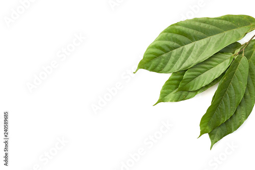 © 1981 Rustic Studio, Fototapeta premium Cacao tree long leaves on white
