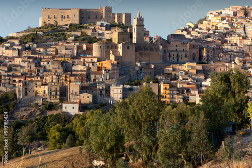 © Guido, Fototapeta premium Caccamo, PA. Panorama della cittadina con il Castello