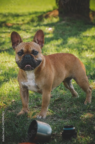 © Stephanie, Obraz premium 1 cachorra bulldog en la grama
