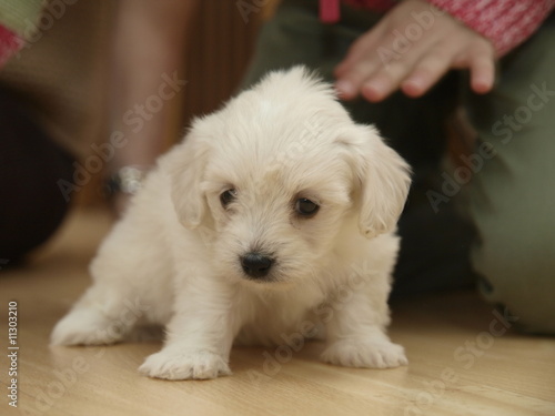 © Javier Cuadrado, Obraz premium Cachorro, de bichon maltes, aprendiendo a andar