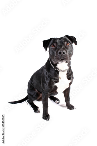 Obraz premium Cachorro pit-bull preto, isolado no fundo branco