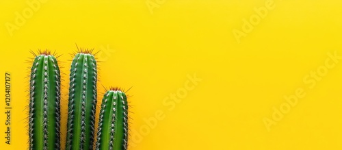 Naklejka premium Cacti on vibrant yellow background with copy space for text decoration and...