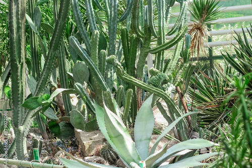 © ir1ska, Obraz premium Cactus Ferocactus pilosus round with thorns in the desert close-up