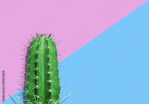 © Anucha, Naklejka premium Cactus on pink and blue background Creative design. Minimal Concept, Clipping Path no Shadow.