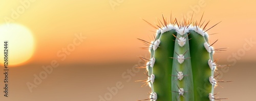 © Phisan, Naklejka premium Cactus silhouette at sunset on desert landscape.