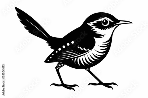 © Pinak, Fototapeta premium cactus wren line art silhouette vector illustration