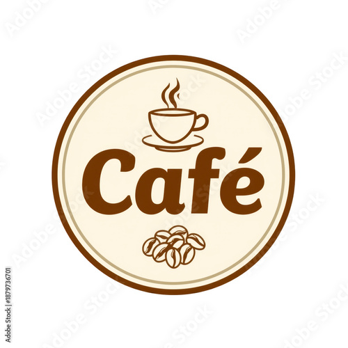 © Nurunnahar, Obraz premium Cafe Logo with Coffee Cup and Beans, Vector Illustration