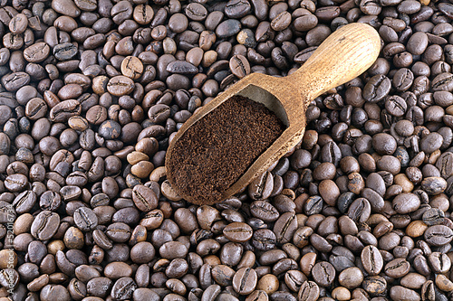 © fragolerosse, Obraz premium Caffè macinato e Caffè in chicchi