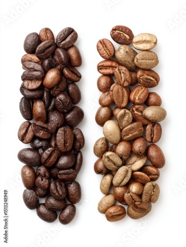 © Anat art, Naklejka premium Caffeinated and Decaf Coffee Beans Side-By-Side Comparison Highlighting Differences in Color and Appearance
