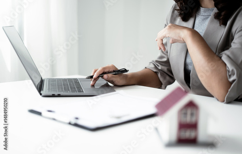 © Orathai, Naklejka premium cagents working in real estate investment and home insurance signing contracts in accordance with the home buying insurance agreements approving purchases for clients